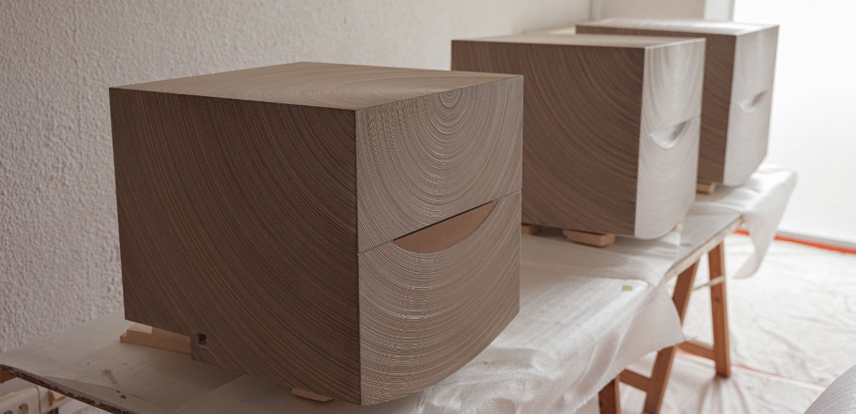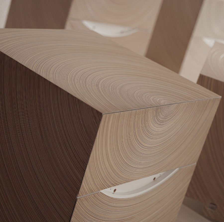 The two-toned curves subtly add to the graceful allure of these cubes. A big technical challenge but nothing stops the intention of our gestures and their application on volumes.