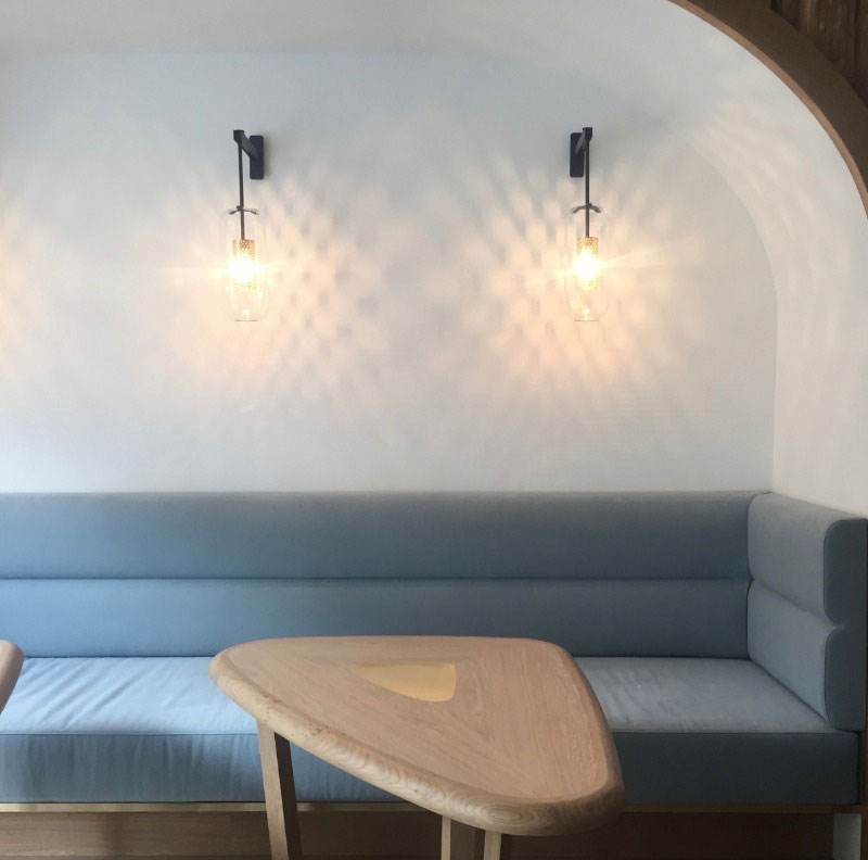 Creation of a luxurious, elegant wall cladding with a delicate texture for the Relais & Châteaux Opéra boutique in Paris. A wall décor composed of vertical veining to match the wood of the walls.