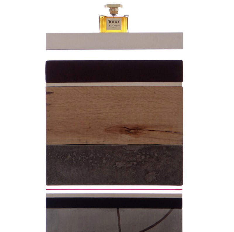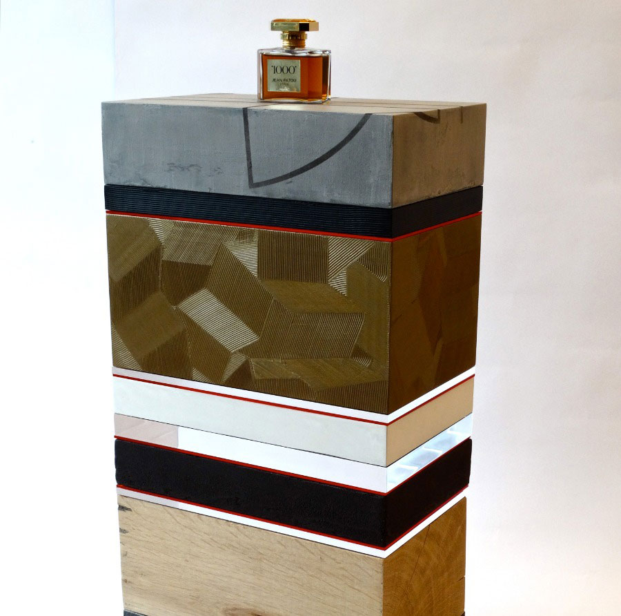 Jean Patou, couturier et fabricant de parfums français de luxe a consulté les Ateliers Berger, décorateur d’exception, pour la conception d’un socle modulable pour le parfum "1000". Ce mobilier haut de gamme matérialise visuellement et tactilement les sensations olfactives : le socle devenant l’ambassadeur du parfum avec une composition de bois, d’enduits décoratifs, de plexiglass et de métal.