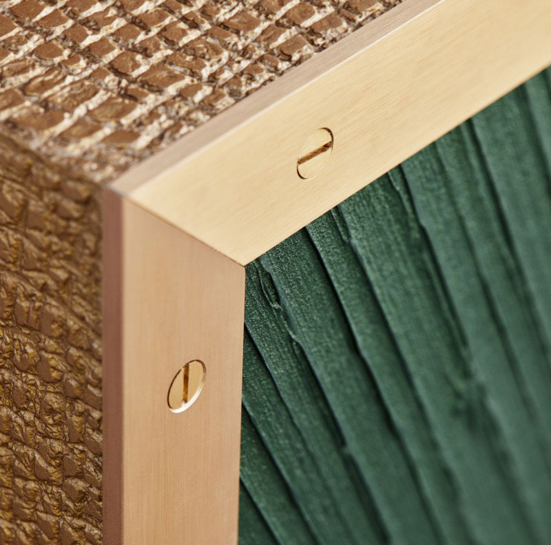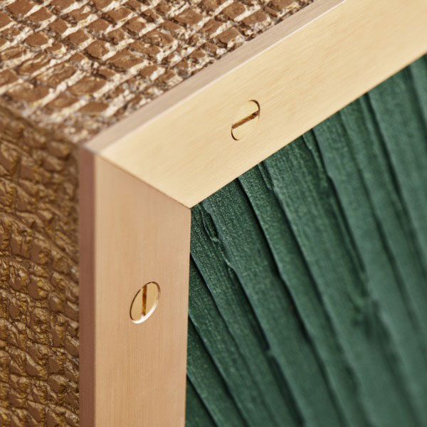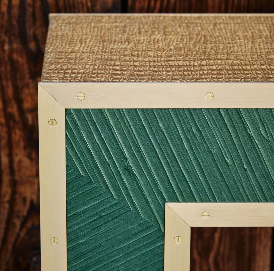 French luxury decorator Martin Berger created an entrance console for the reception area of a grand Parisian hotel. The Amazonia console, a bespoke piece of furniture inspired by the Amazon rainforest, a place of diversity and wonder, uses noble materials and exceptional French craftsmanship to create a decor combining textured geometric composition and graphic bronze lines.